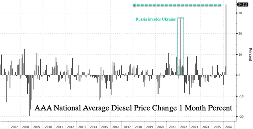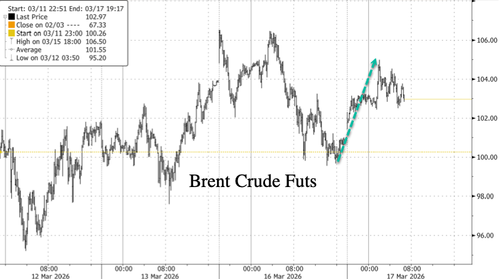 Iran “Starts New Phase Of Oil War” After Energy Production Hit Crude oil futures rose in overnight trading, with Brent nearly reaching $105 per barrel and WTI climbing as high as $98.42 per barrel, as Iran intensified drone strikes on energy infrastructure across the Gulf. “Further ominous developments today. For the first time, Iran successfully targeted oil and gas production facilities, rather than refining, terminals, and […]